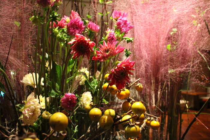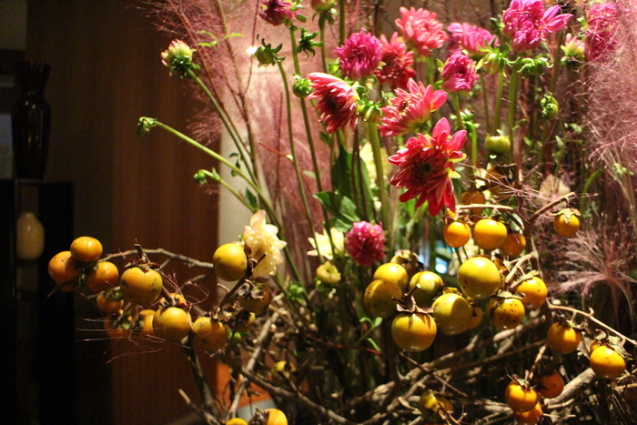 【主素材】玫瑰果藤、大理花、柿子